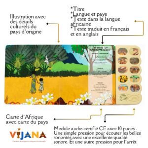 Avec ce livre sonore l’enfant crée un moment de partage familial unique et transmet l’héritage oral africain de manière ludique et moderne.