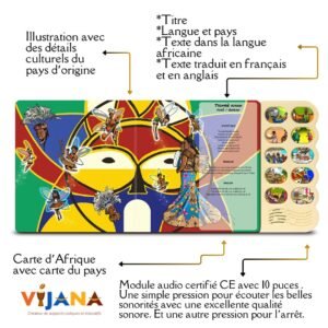 Avec ce livre sonore l’enfant crée un moment de partage familial unique et transmet l’héritage oral africain de manière ludique et moderne.